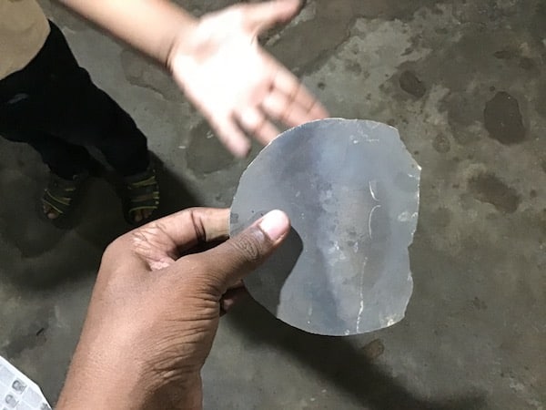 The die is broken out to get the metal sheet which is being polished in a row to get the reflected surface of Aranmula Mirror