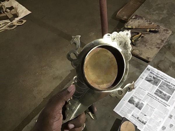 The secret in this making of Aranmula Mirror lies in the ratio of metals used in the alloy. We have visited one of the families make Aranmula mirror which is a perfect souvenir to take on Kerala as well to gift some one.
