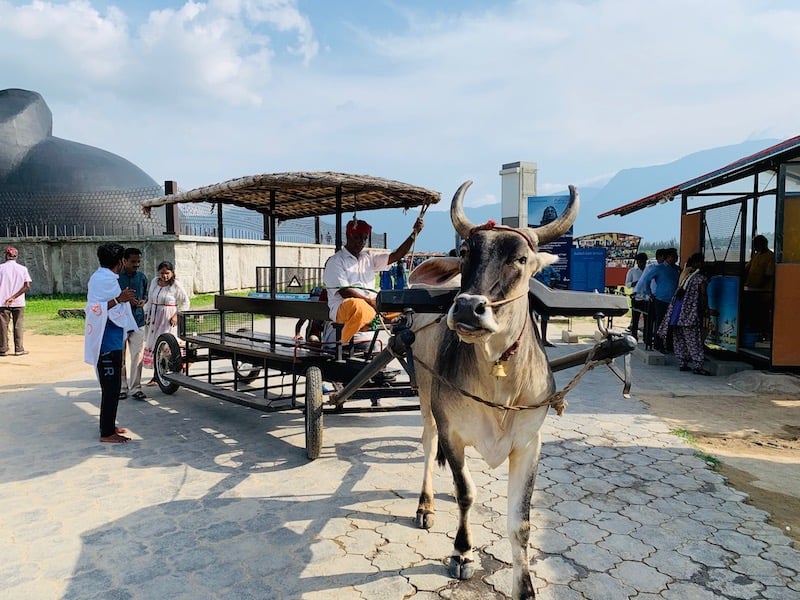 From Adiyogi statue at Isha yoga centre we need to either walk or use bullock cart to reach the actual place which is 400meter away.
